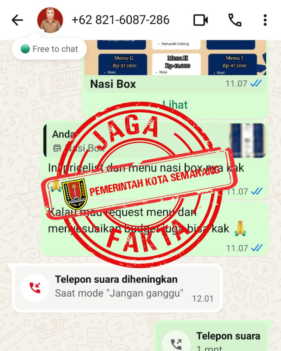 Jika menemukan informasi hoaks atau pesan mencurigakan yang mengatasnamakan pejabat/ASN Pemerintah Kota Semarang, segera hubungi: